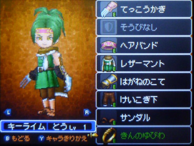 金欠で装備品をそろえられないので、とりあえず手持ちの中で緑色のものを着てもらいました。