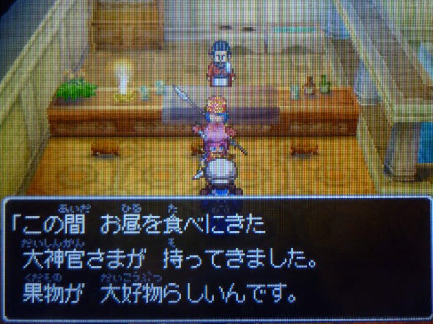 転職するためには大神官を探してこなくちゃいけない、しかもいなくなった原因がどうも女神の果実がらみっぽい。大神官がいなくなる前、旅人に妙な果実をもらっていたらしく、詳しい話を聞きに行きます。