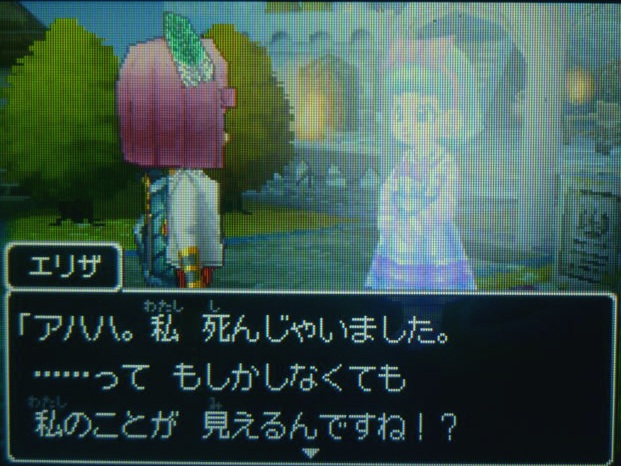 夜、墓地にあわられるエリザの幽霊と話します。