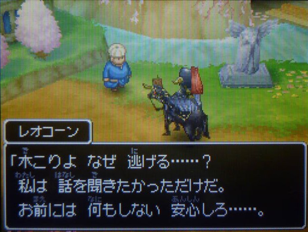 黒騎士ことレオコーンが木こりを怯えさせているっ。