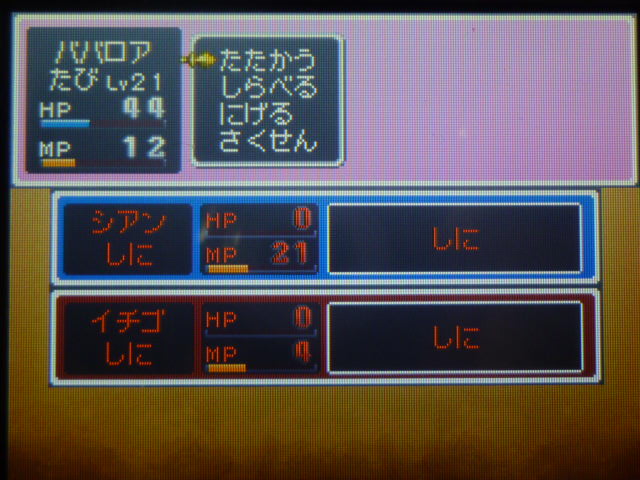 町に戻ってまず教会で2人を復活。2人で180ゴールドでした。復活代はもしかして高レベル=高額になっていくのか。