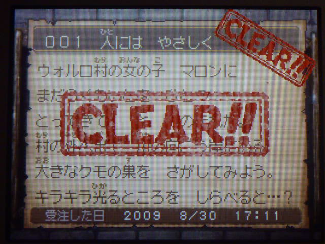 依頼を完了すると、ドシン!とクリアのスタンプが押されます。