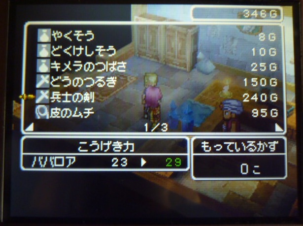 ドラクエ9は装備によって見た目も変わるので、買い物が楽しみです。
